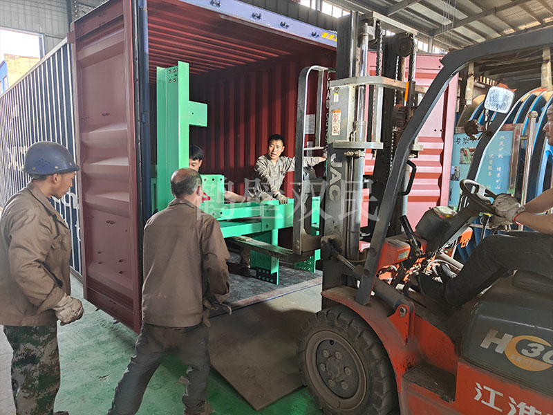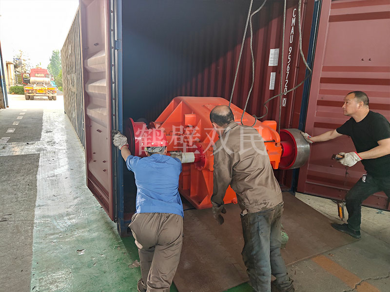 工人師傅將礦用絞車底架拆卸完成,并順利的裝入了集裝箱內。