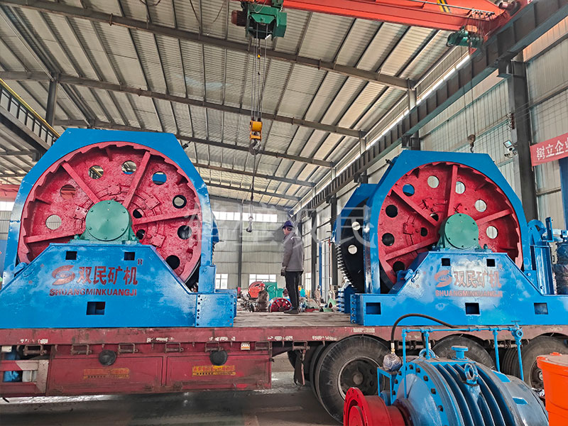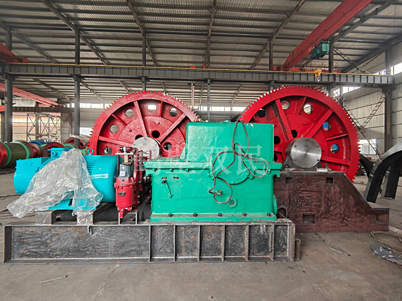 本絞車主要用于煤礦、金屬礦和非金屬礦豎井井筒掘進(jìn)時(shí)懸吊吊盤、水泵、水管、注漿泵、風(fēng)筒等掘進(jìn)設(shè)備和張緊穩(wěn)繩,該絞車系雙鋼絲繩懸吊。將減速機(jī)上的差動(dòng)手把放在差動(dòng)位置,若張緊穩(wěn)繩,可使兩根穩(wěn)繩的張緊力保持相等;若懸吊水管、注漿管、風(fēng)筒等管類設(shè)備,可保證其被懸吊管類設(shè)備與地面保持垂直的狀態(tài)。如果懸吊吊盤等盤狀設(shè)備,需將其差動(dòng)手把放在直通位置,才能實(shí)現(xiàn)兩繩繩速的一致。